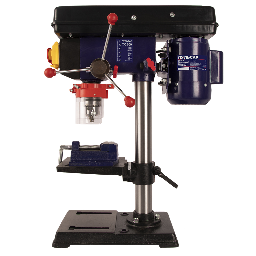 Станок сверлильный ПУЛЬСАР СС 500 (500Вт, 16мм, 9 скоростей, 280-2350 об/мин, 20 кг) + тиски