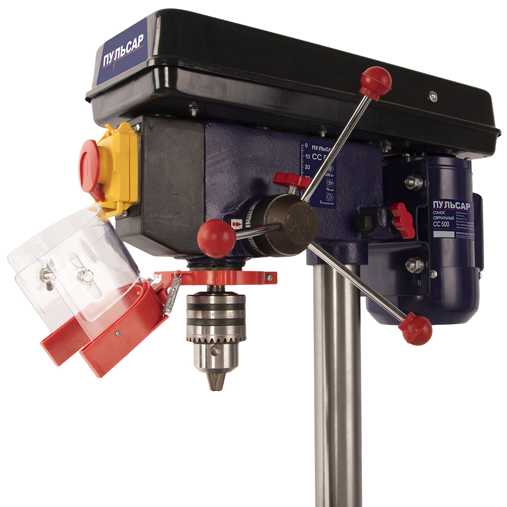 Электрический сверлильный станок ПУЛЬСАР СС500 предназначен для сверления, отверстий в металлах, твердых полимерных материалах и древесине, при установке соответствующих свёрл. Сверлильный патрон и часть сверла закрыты прозрачным экраном для предотвращения попадания стружки в оператора. Жесткая конструкция рабочего стола и основания обеспечивают четкость и точность отверстий.