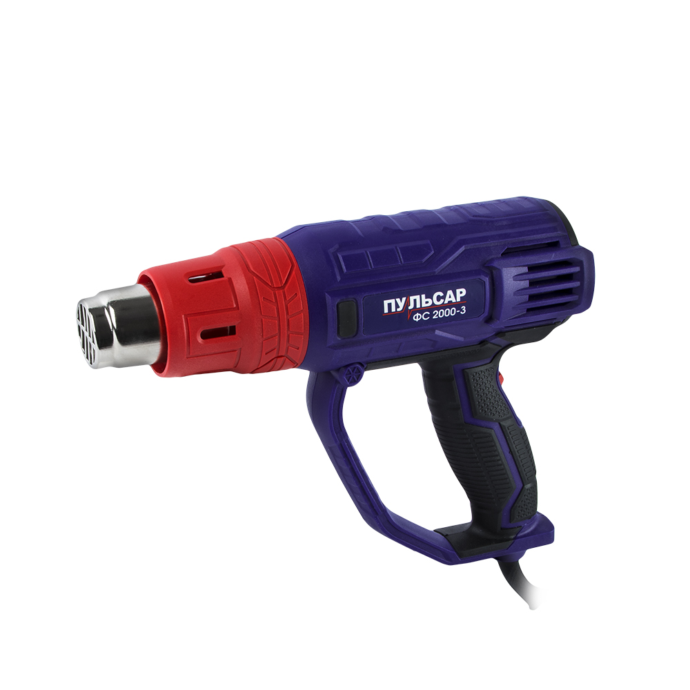 Строительный фен ПУЛЬСАР ФС 2000-3 (2000Вт, 60-600*C, 300/500л/мин, 0,9кг, кейс + 4 насадки)