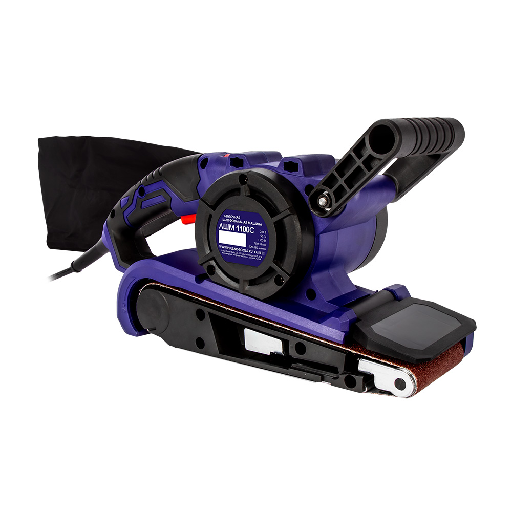 Шлифмашина ленточная ПУЛЬСАР ЛШМ 1100С (1100Вт, лента 76х533, 120-380м/мин, струбцины, 4,1 кг)